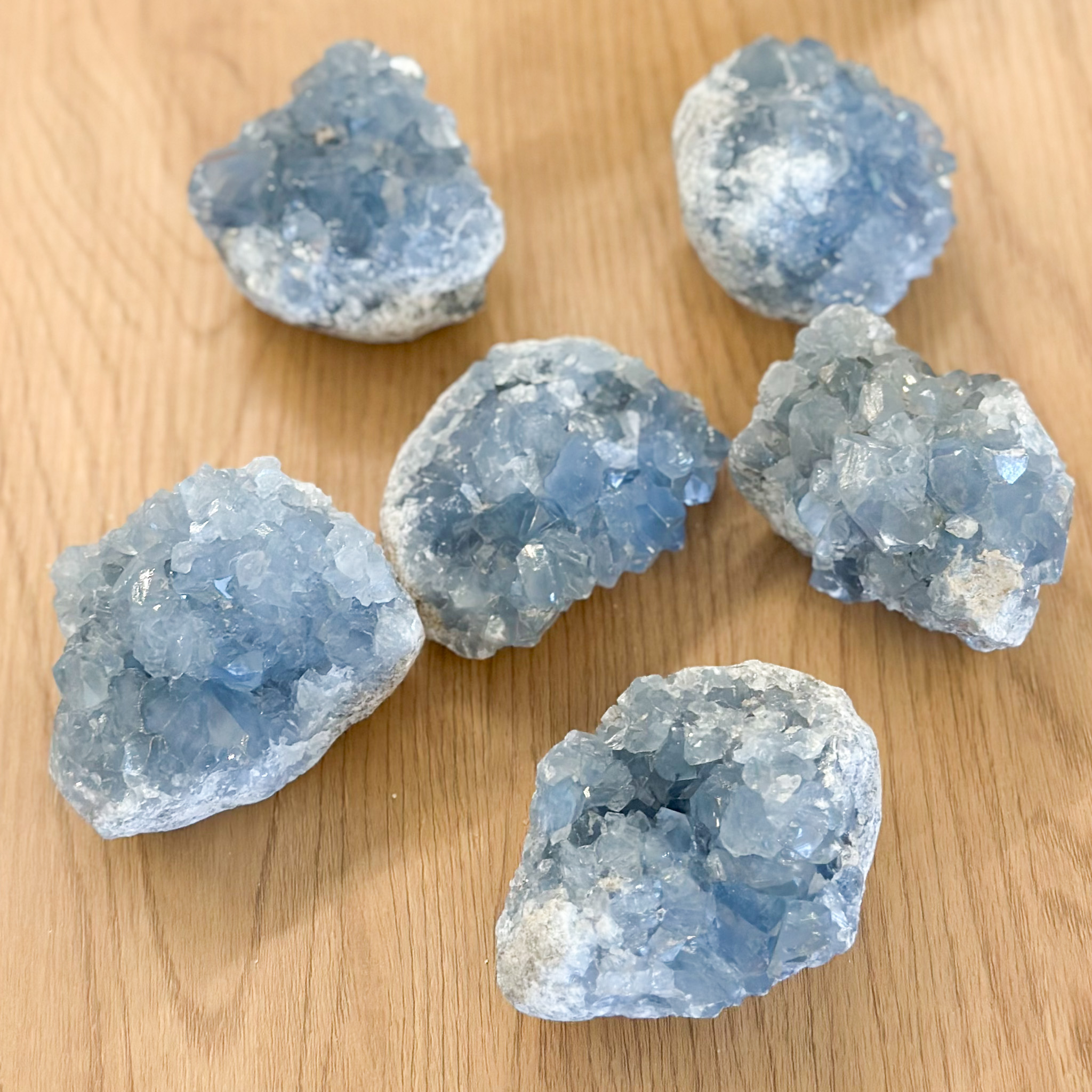 Celestin er en krystall med et lett, luftig og rolig uttrykk, kjent for sin sarte blåfarge og rolige energi. Den forbindes ofte med stillhet, klarhet og indre fred, og mange bruker den som en støtte i rolige stunder, meditasjon eller når man ønsker et harmonisk uttrykk i rommet.
