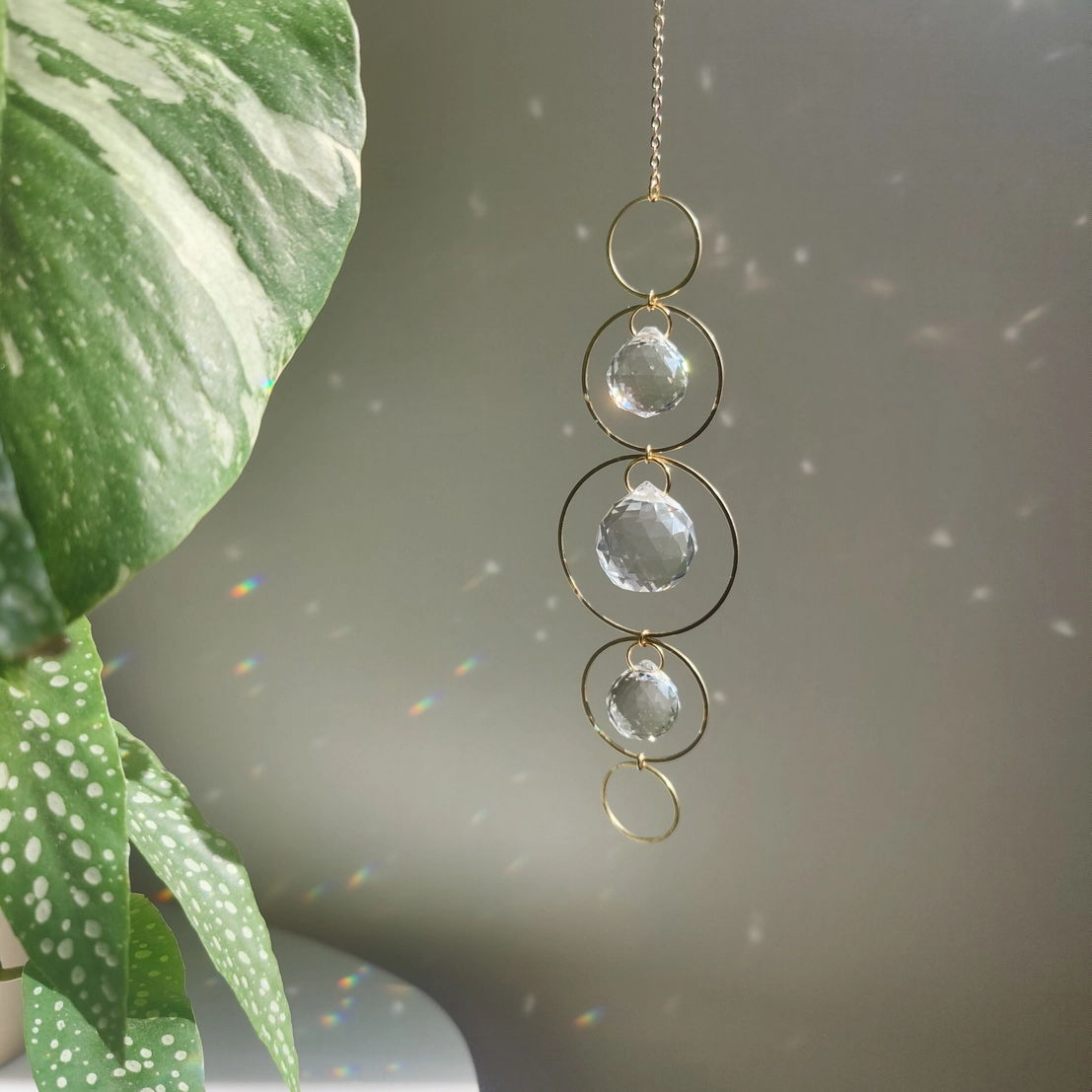 Constellation er en stor solfanger i messing, bestående av tre fasettslipte krystaller som gir et intenst lysspill. Hengt foran et vindu forvandler den sollys til regnbue-refleksjoner og skaper en lys og beroligende atmosfære.