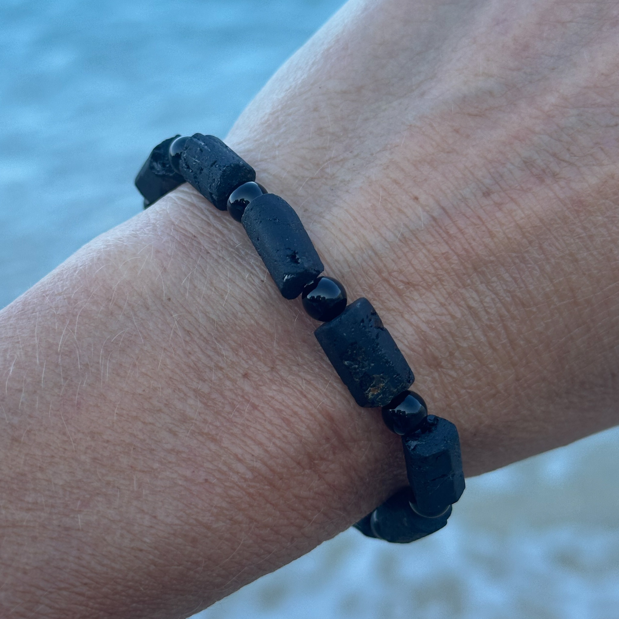 Svart turmalin krystallarmbånd – en populær sten for jording, beskyttelse og indre balanse.
