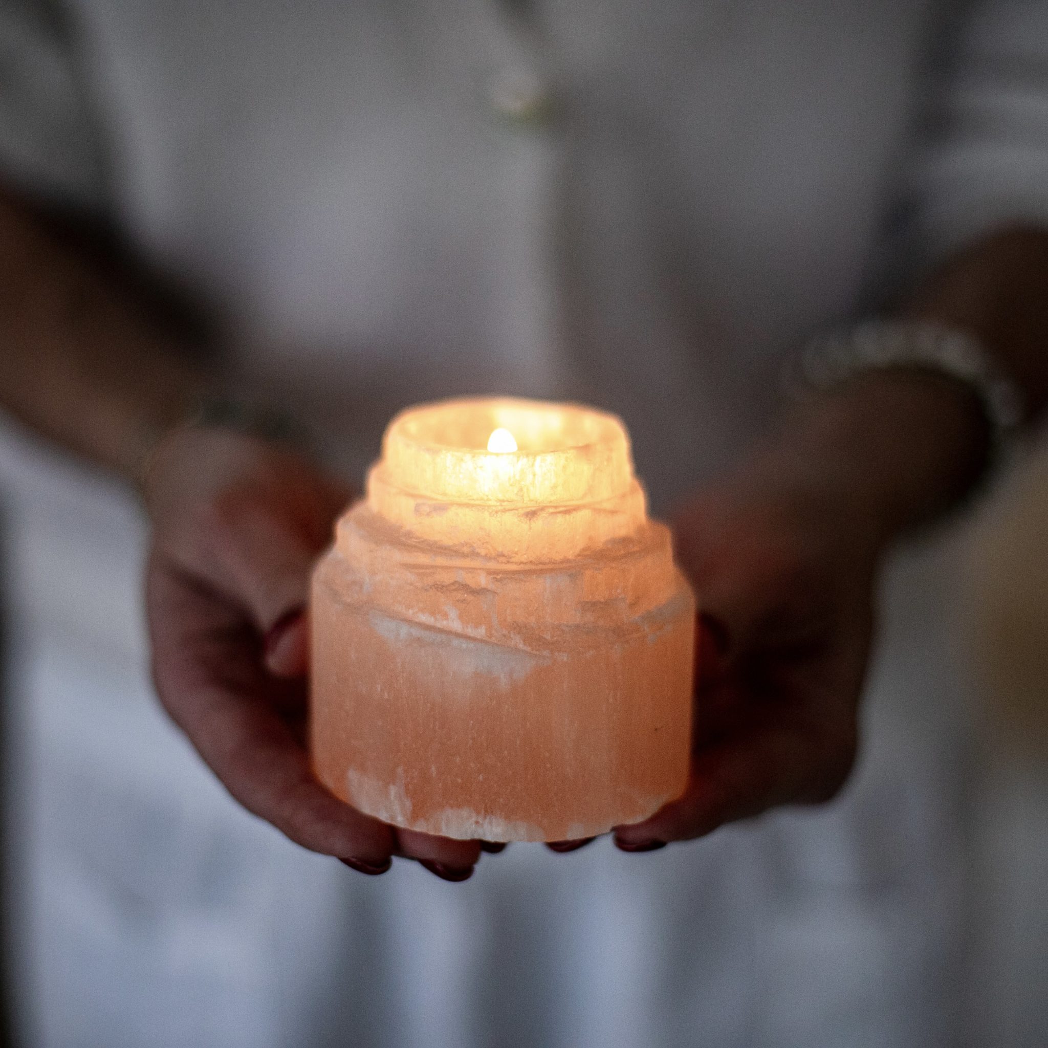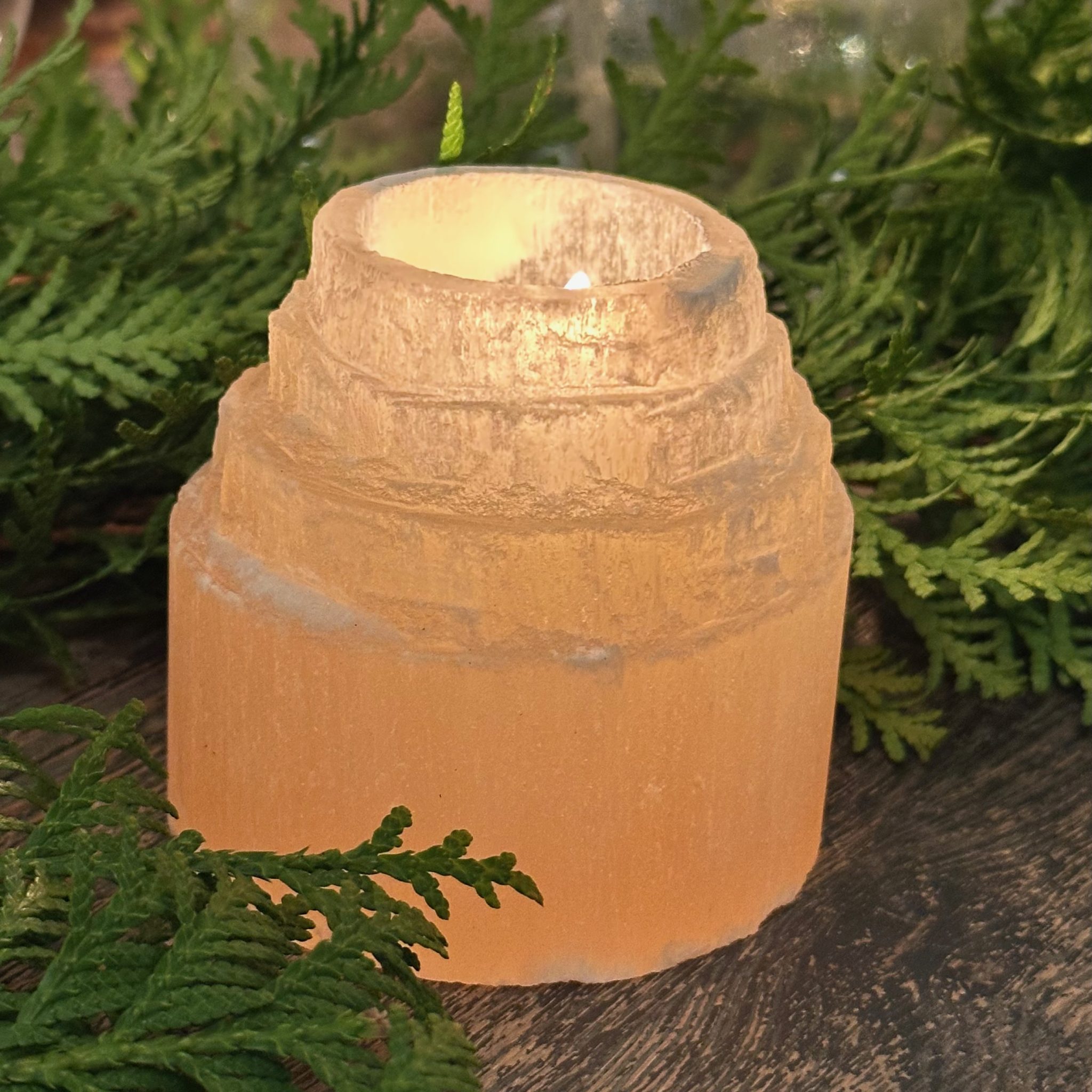 Selenitt telysholder “Gratitude” Orange