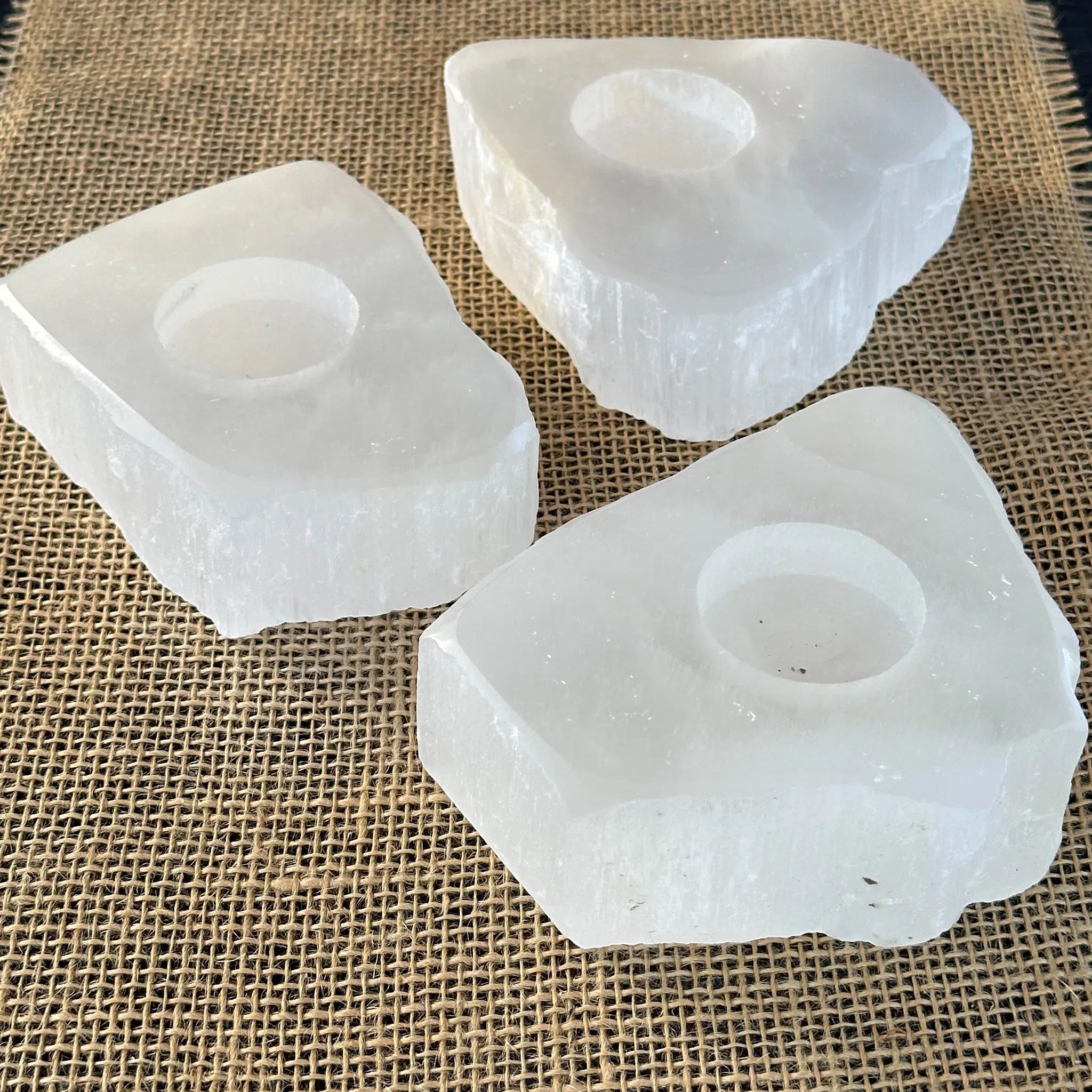 Denne nydelige selenitt telysholderen hjelper deg å skape en harmonisk atmosfære i hjemmet. Selenitt telysholder har en rensende effekt og kan plasseres i alle rom.